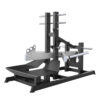 In this exercise, the weight is concentrated on your waist, and the action of lifting is driven entirely by pushing through your feet, reducing strain on your upper body compared to traditional squats that place the load directly on your lower body. This design also makes it easier to perform deeper squats. The machine is user-friendly, making it ideal for beginners and older individuals, as it allows you to focus on lower body training without the need to worry about upper body posture or form.