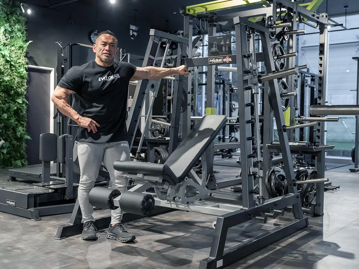 This Smith machine replicates the feel of dumbbell training with the stability of a fixed unit. Its most striking feature is the converging movement path; as you press, the arms naturally move inward, maximizing the stretch and contraction of the pectorals.