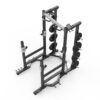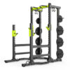 This model combines the robustness of a power rack with the compact design of a half rack.